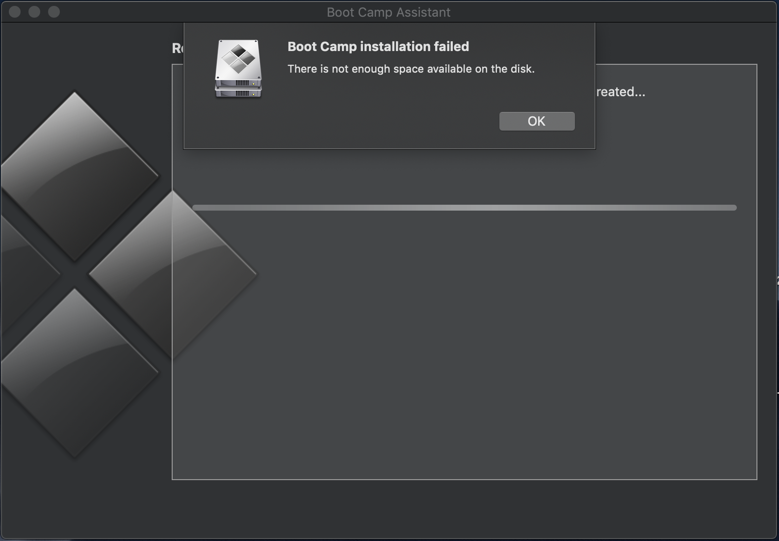 Boot Camp goes all the way through the partition phase then fails with this message: