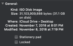 I set the partition size at 150 GB on my 500 GB internal SSD drive. I checked the .iso file size and it is only 31 GB.