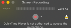 QuickTime Player won't let me screen-record because it's 'not authorised to access the microphone