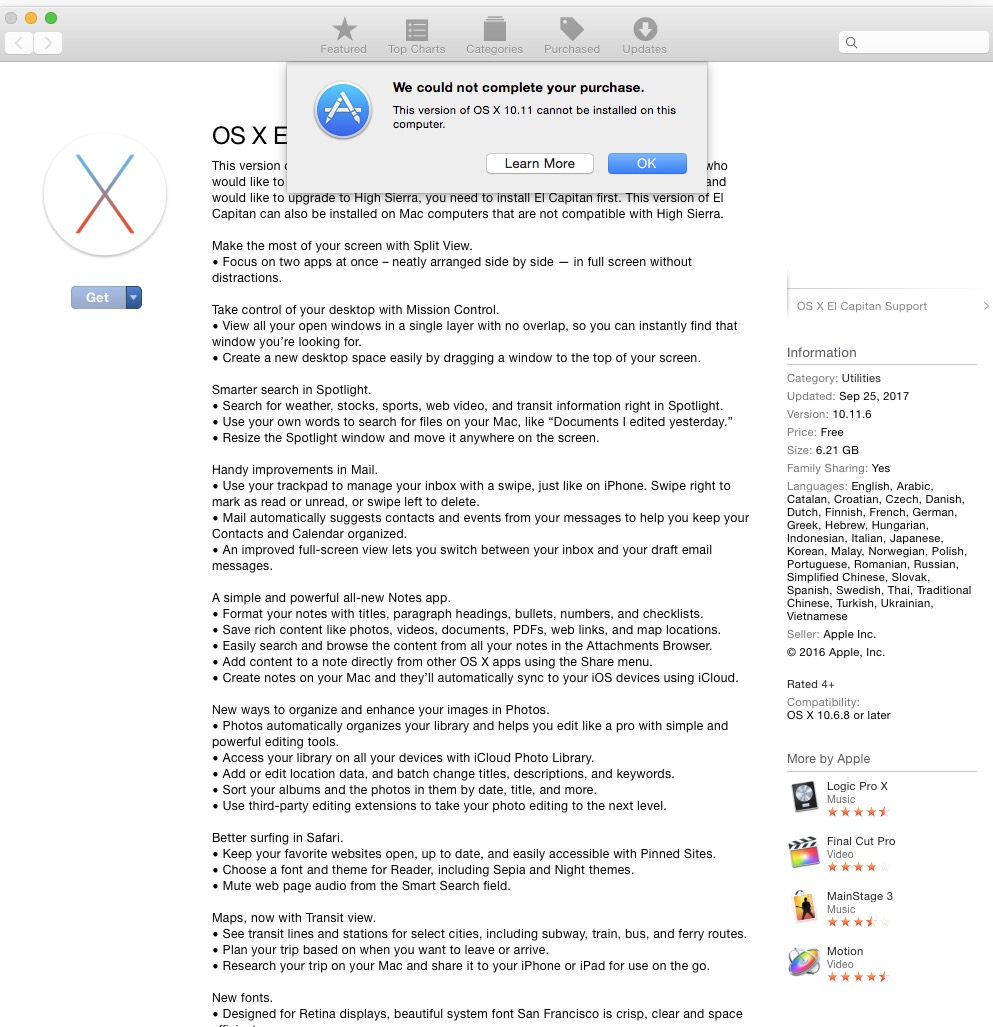 Note that some 3rd party software will have not only minimum system requirements (like your photography software), but may also have less documented maximum system requirements (won’t run beyond a certain OS version). Before upgrading, check your essential software and their websites for supported OS versions. If you “absolutely depend” on some software that won’t run beyond OS X El Capitan 10.11, then by all means use that instead.