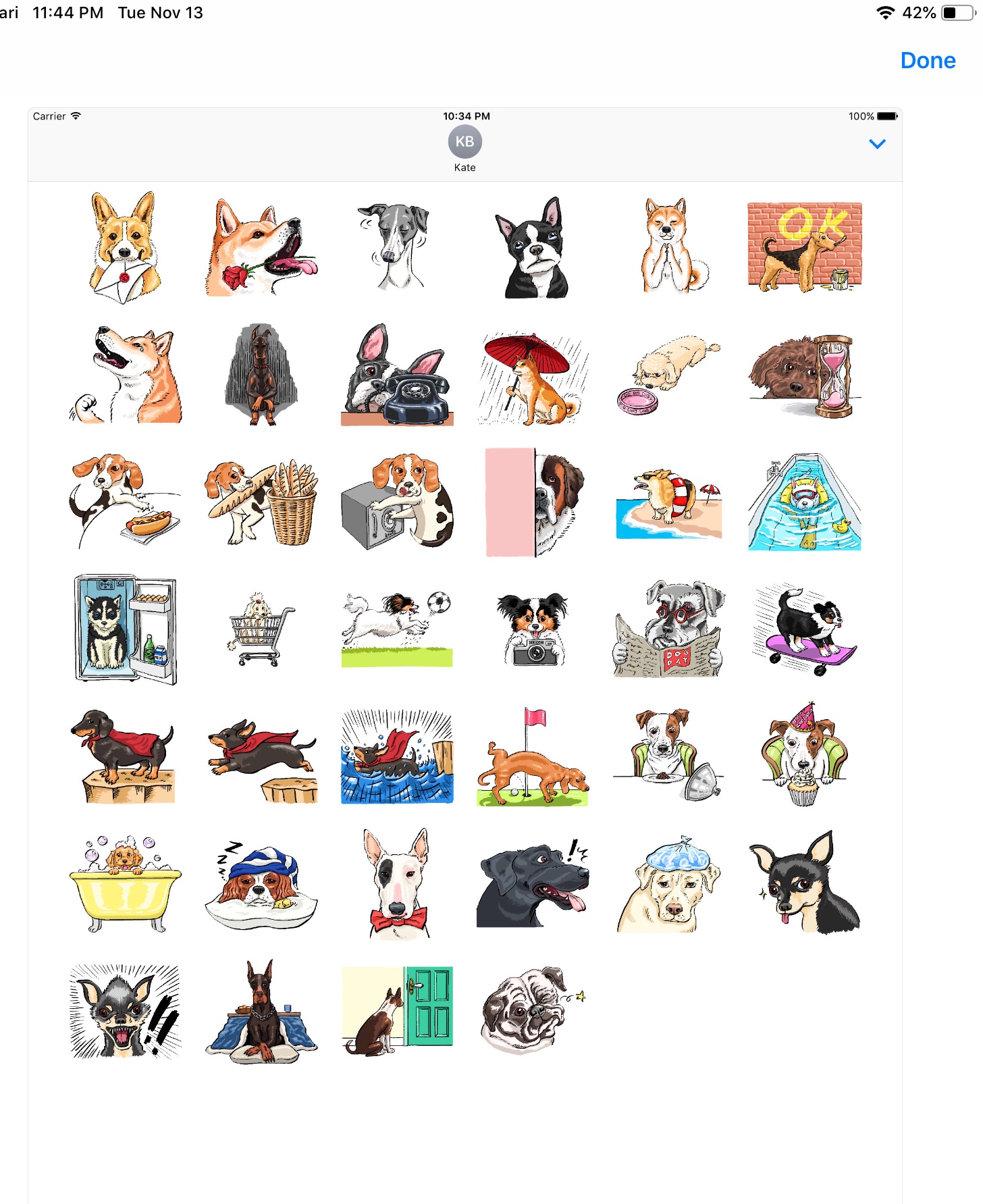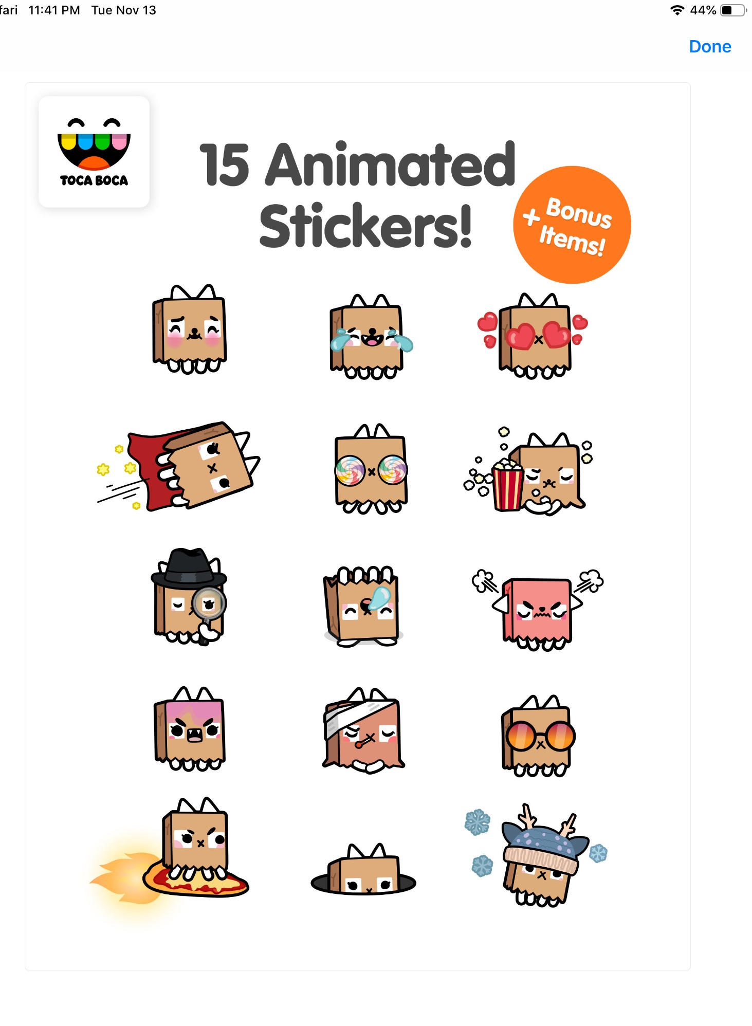 Have you tried going to the app store on the device (not in messages) and type in "yay so cute?" those look similar. If those are not it then search for stickers for imessage.