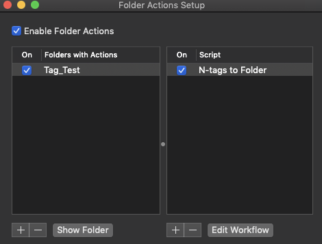 I'd like to have a folder action that would allow me to tag one or more files once I dropped them inside a specific folder (I'll apply that action to several folders and subfolders).