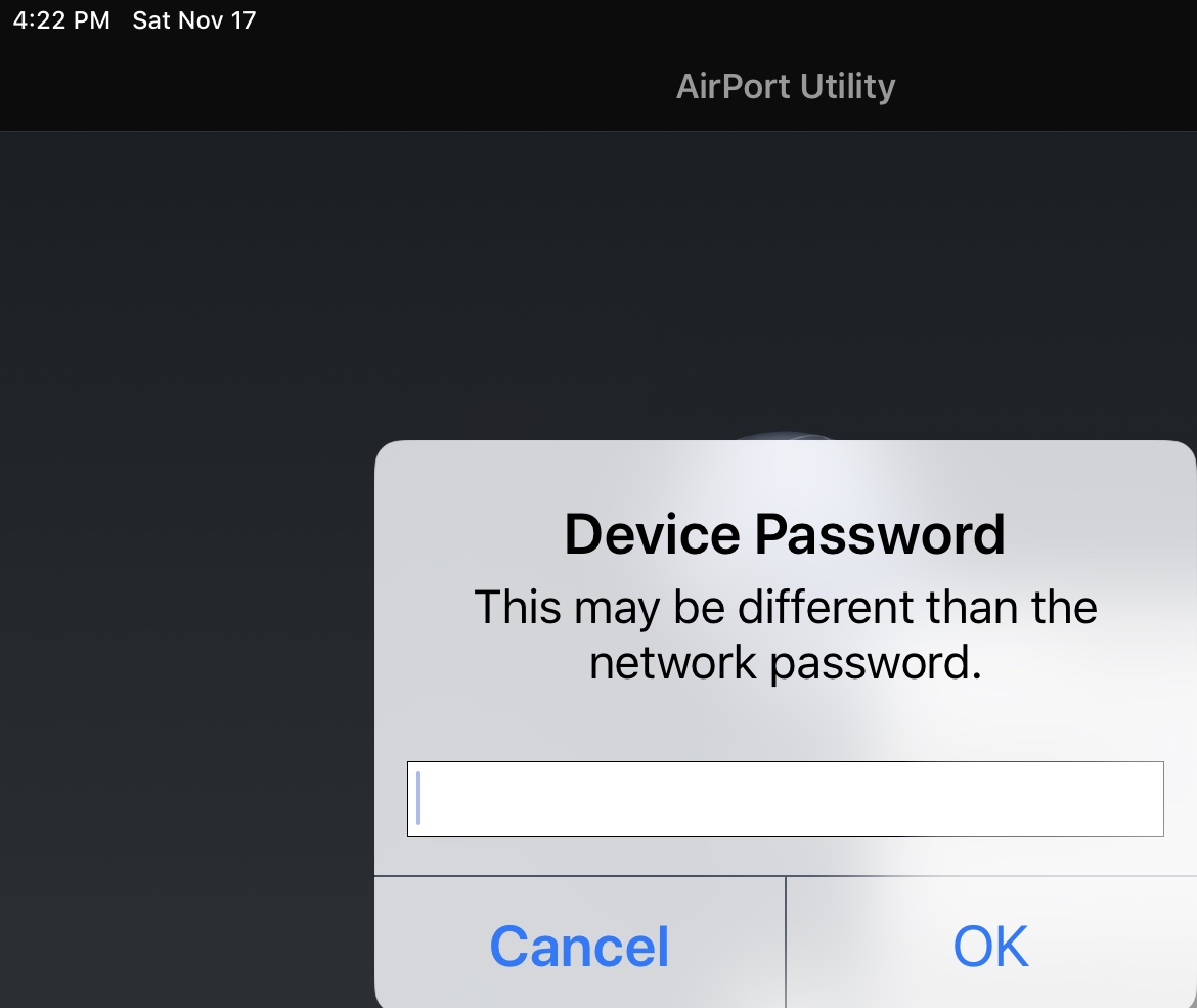 But I still cannot view the information and it is endless loop with asking for device password. Airport Utility never asked before for password. how to correct?