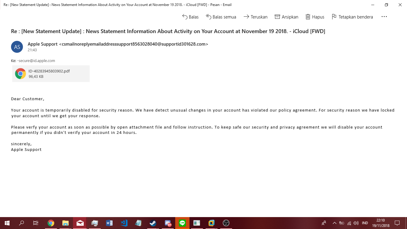 So not so long before I post this thread, I received an email stating that my account is temporarily disabled for security reason as shown below