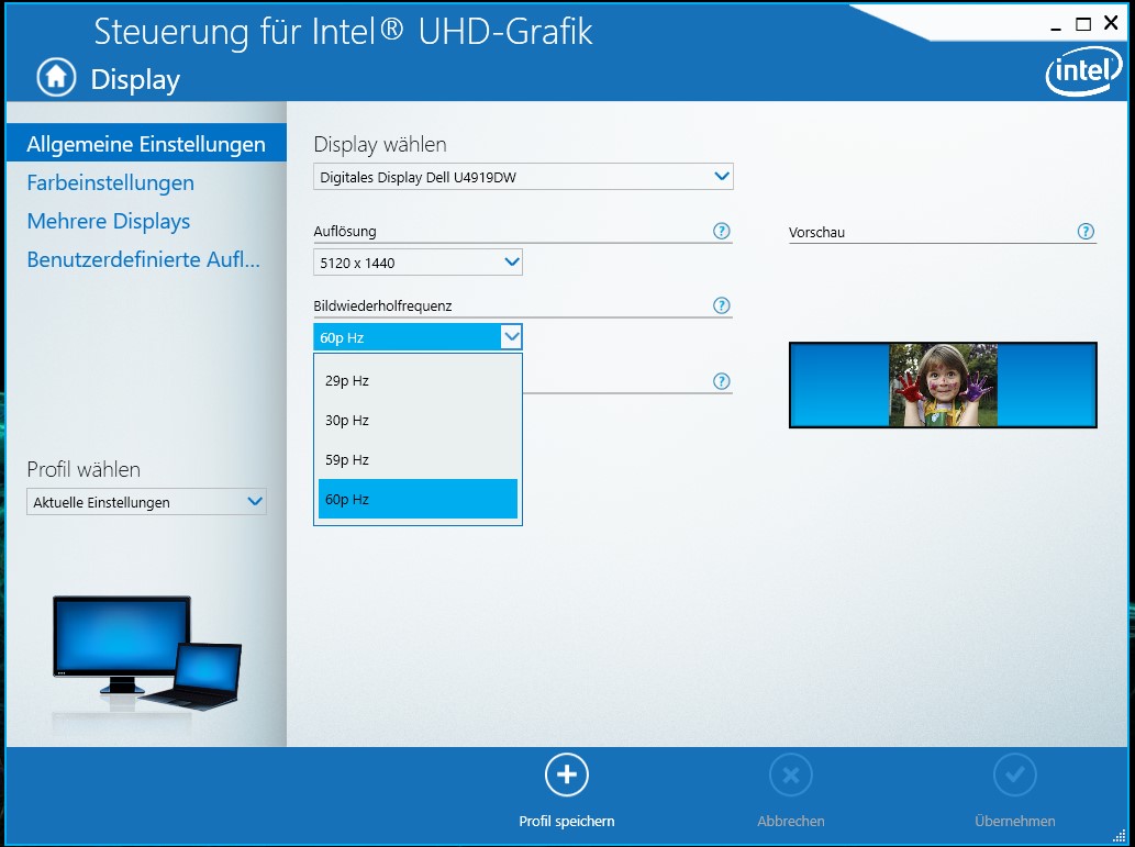 Under Windows. And I am able to set different resolutions and refresh rates in the Intel GPU Settings.