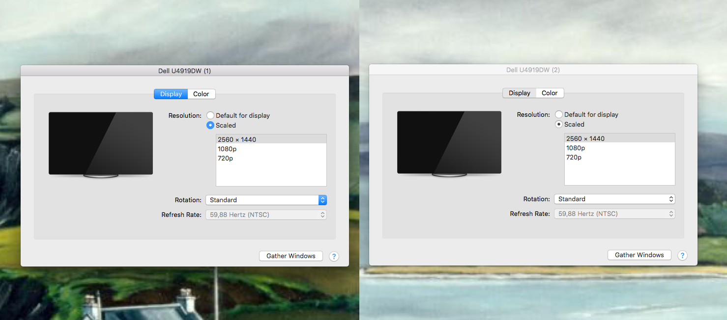 I have just purchased the Dell U4919DW monitor to use with my early 2018 MacBook Pro 13", but unfortunately I cannot choose full resolution 5120x1440 in the settings, max is 3840x1080. I have tried the app SwitchResX to manually set the 5k resolution without luck, only scaled.