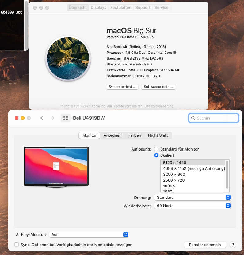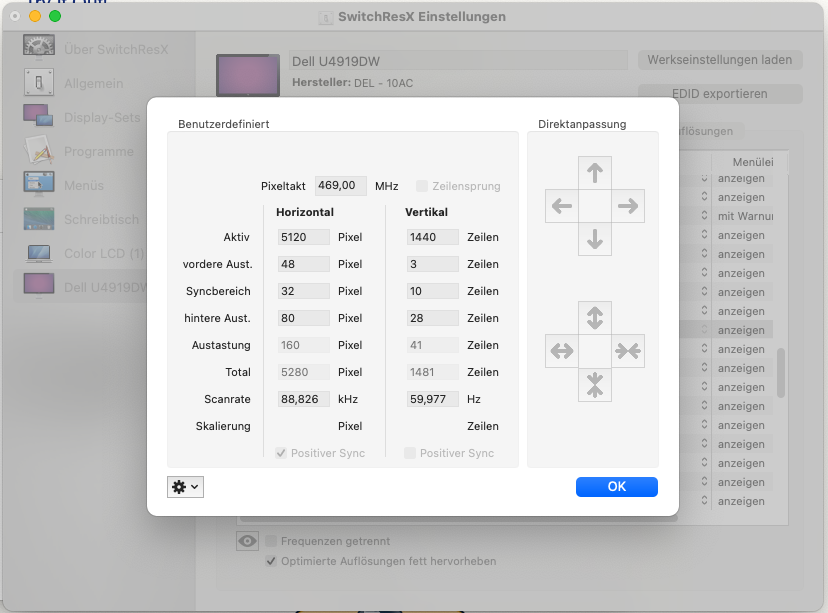 I have just purchased the Dell U4919DW monitor to use with my early 2018 MacBook Pro 13", but unfortunately I cannot choose full resolution 5120x1440 in the settings, max is 3840x1080. I have tried the app SwitchResX to manually set the 5k resolution without luck, only scaled.