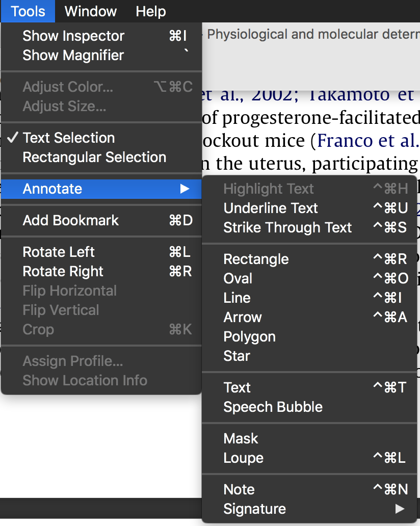 Hi. I have a related problem in Preview too. The Highlight shortcut Command + Control + H doesn't work. The only way to highlight is going to Tools - Annotate - Highlight Text or by using the Highlight Icon at the Toolbar. I've tried in Safe Boot Mode, Restoring shortcuts to default, changing the account user but none of them worked. The Underline shortcut works fine. I tried what you told in this thread but it didn't work :(. It has been like this since the first day of the computer. Does anybody know how to fix it? Thanks.