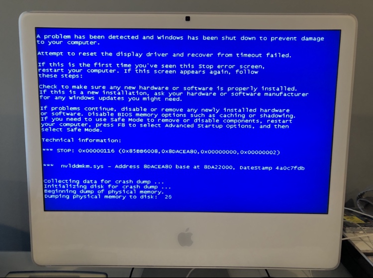 Windows 7 blue screen during installation on iMac Intel Core 2 Duo