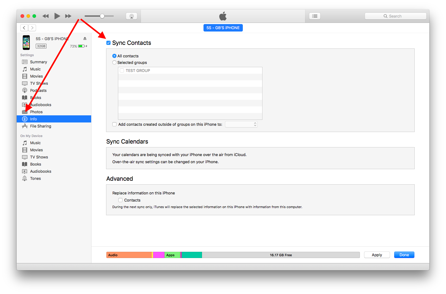 This article provides additional information: Sync your iPhone, iPad, or iPod using iTunes on your computer - Apple Support