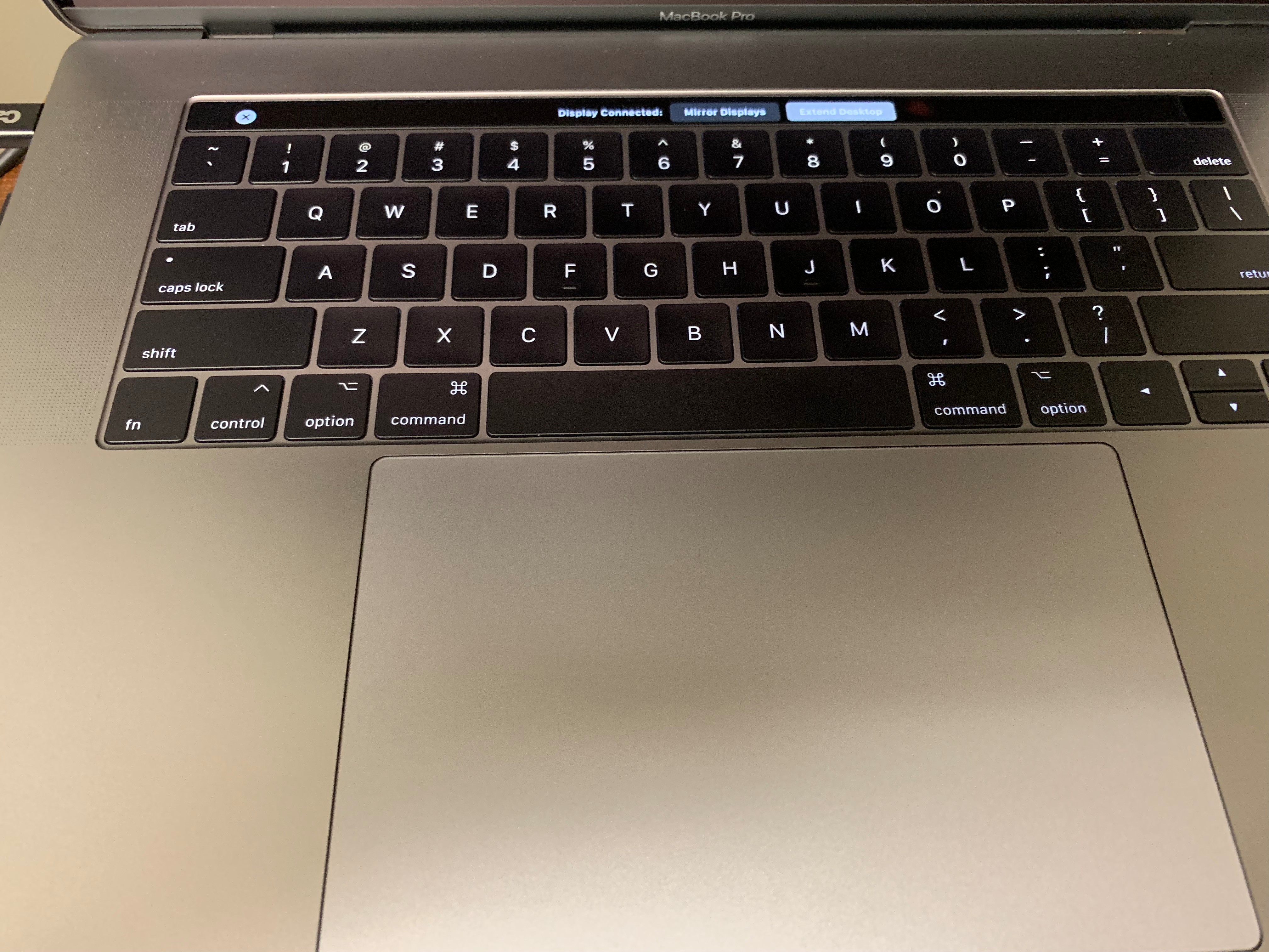 My Mac was in clamshell mode, as it always is when connected to my dock, and when I opened it it was completely unresponsive. The display was blank and the Touch Bar was stuck on the 'Display Connected' screen, which I've pictured below. The Touch Bar wouldn't even respond to touch.