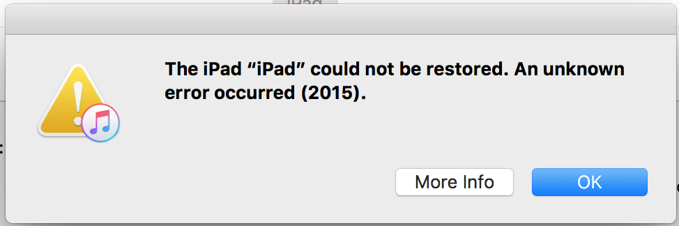 I see that you're unable to restore your mother's iPad mini. You get an error 2015, and I'm happy to help.