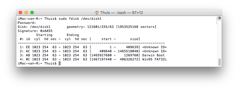 Output from: sudo fdisk /dev/disk0
